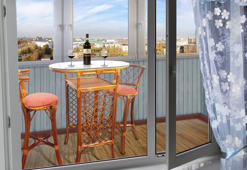 Интерьер балкона со столом