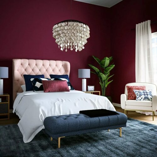 Для создания интерьера спальни бордового цвета можно использовать различные дизайнерские приемы. Одним из вариантов является использование бордового цвета в сочетании с нейтральными оттенками, такими как белый, серый или бежевый. Это позволит создать контрастный и элегантный интерьер, при этом не перегружая помещение.