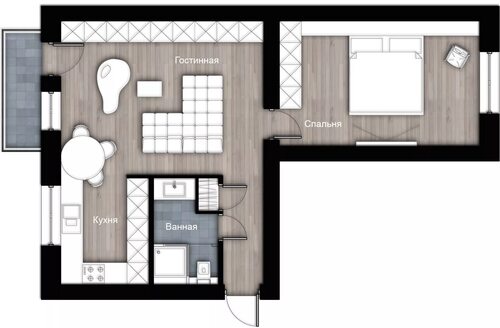 Перепланировка двухкомнатной хрущёвки 45 кв.м