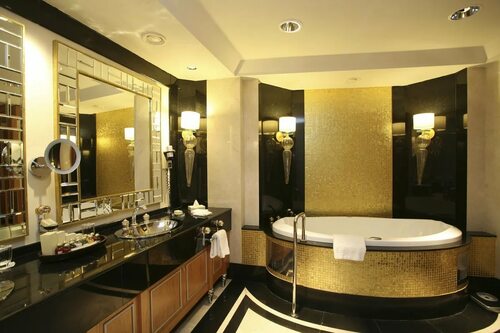 Дизайн ванной комнаты в золотистых тонах может придать интерьеру особую роскошь и изысканность. Золотистые оттенки могут быть использованы как основной цвет или для акцентов, создавая атмосферу изыска и шика.