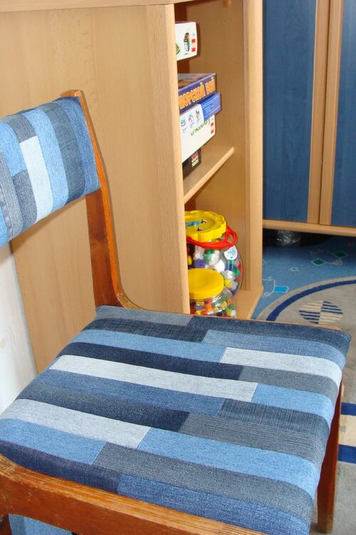 Для изготовления сидушки из старых джинсов вам понадобятся: старые джинсы, ножницы, нитки, игла, наполнитель (например, синтепон или холлофайбер), и, конечно же, ваш стул.