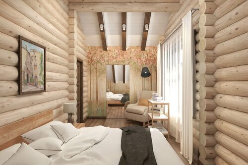 Спальня в бревенчатом доме