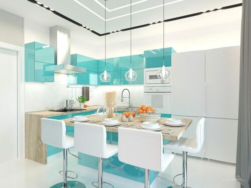 Бирюзовый цвет в интерьере - это яркое и стильное решение, которое придает помещению особую атмосферу. В сочетании с белой кухней бирюзовый становится еще более выразительным и привлекательным.