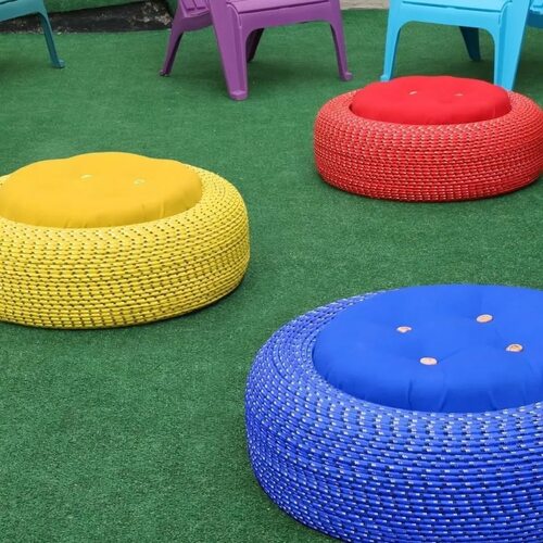 Теперь у вас есть уютный пуфик из шины для вашего сада! Наслаждайтесь отдыхом на свежем воздухе с этим стильным и удобным элементом мебели.