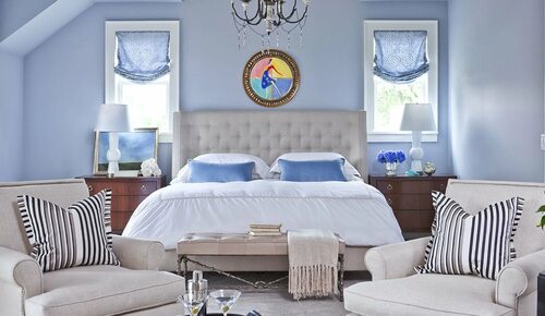 Нежно голубой цвет можно использовать как основной или акцентный цвет в интерьере. Он отлично сочетается с нейтральными оттенками, такими как белый, серый или бежевый, создавая свежий и легкий образ помещения.