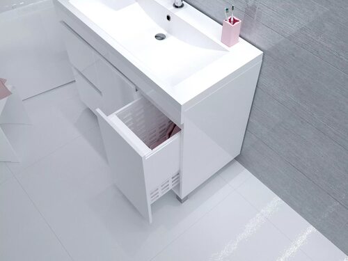Ниже представлены фотографии тумбы с раковиной 1marka cube 100н с бельевой корзиной, позволяющие рассмотреть каждую деталь этой модели. При выборе мебели для ванной комнаты важно увидеть ее во всех ракурсах, чтобы принять правильное решение.