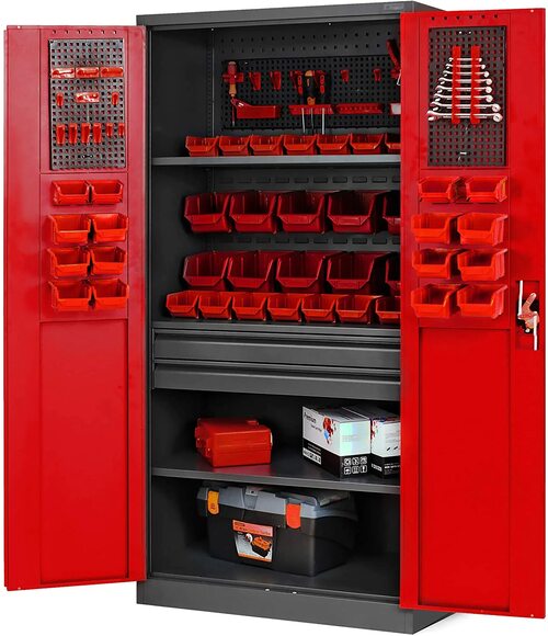 Этот шкаф оборудован различными отделениями и ящиками, что позволяет удобно разместить инструменты различных размеров и форм. Благодаря своей компактной конструкции, он занимает минимум места и идеально подходит для мастерских и гаражей.