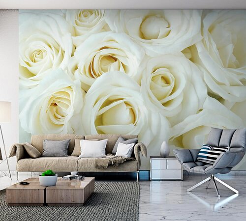 Фотообои с изображением белых роз придают интерьеру особую эстетику и гармонию. Они могут использоваться как в гостиной, спальне, так и в других помещениях, чтобы создать атмосферу умиротворения и красоты.