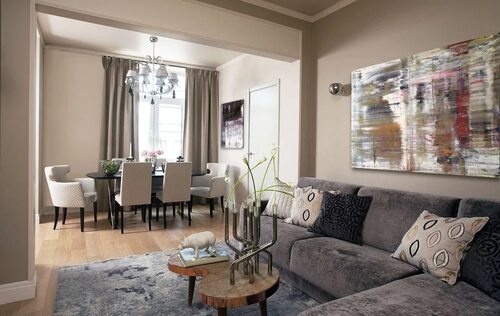 Бежевая и серая гостиная