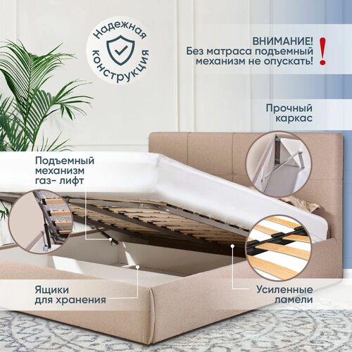 Благодаря подъемному механизму, встроенному в кровать, вы получаете дополнительное пространство для хранения. Это особенно удобно в небольших помещениях, где каждый квадратный сантиметр ценен.