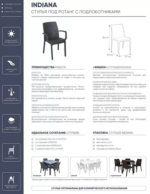 Срок службы стула пластикового также зависит от условий его эксплуатации. Например, стулья, которые находятся на открытом воздухе и подвержены воздействию агрессивных погодных условий, могут быстрее изнашиваться и терять свои эксплуатационные характеристики.