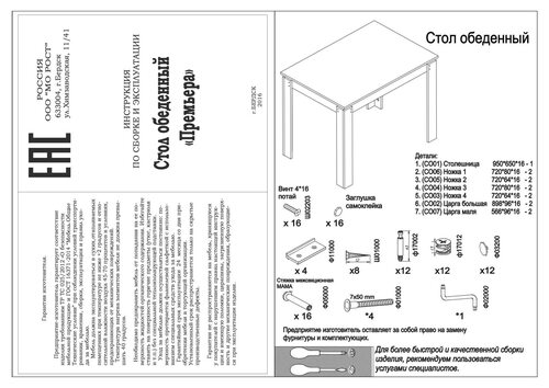 Начните сборку с основы стола, следуя подробной схеме сборки. Затягивайте крепежные элементы согласно инструкции, чтобы обеспечить надежную конструкцию.