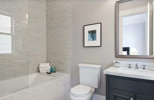 Преимущества интерьера ванной комнаты без плитки на стенах