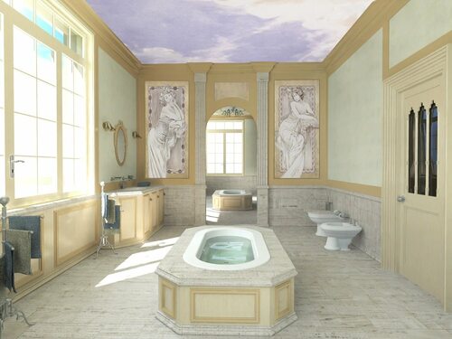 Ванная комната в античном стиле представляет собой идеальное сочетание роскоши, классики и уюта. Этот стиль подчеркивает изысканность и элегантность, создавая уникальную атмосферу релаксации и комфорта.