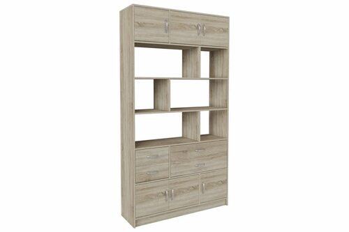 Хофф стеллаж изготовлен из качественных материалов, что обеспечивает его надежность и долговечность. Оттенок дуба сонома придает стеллажу природную теплоту и уют. Благодаря разнообразию полок и отделений, он позволяет удобно хранить книги, декоративные предметы, посуду и другие вещи.