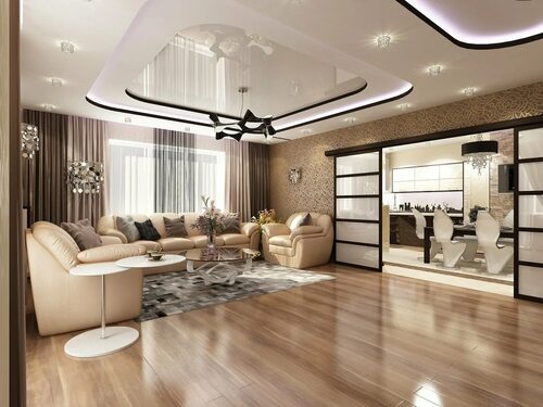 Гипсокартонные потолки позволяют создать различные формы и объемы, что открывает широкие возможности для дизайна. Благодаря гипсокартону можно создать многоуровневые потолки, добавить подсветку или декоративные элементы. Фотографии гипсокартонных потолков в гостиной помогут вам найти вдохновение для своего проекта.