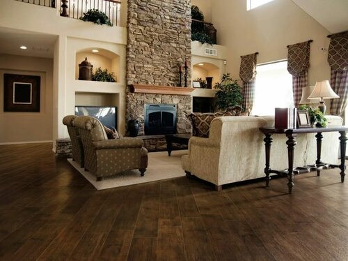 Преимущества использования керамогранита в интерьере деревянного дома