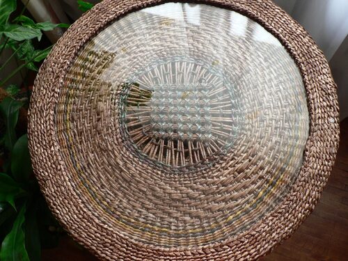 Весь процесс создания столешницы из газетных трубочек подробно проиллюстрирован на фотографиях ниже.