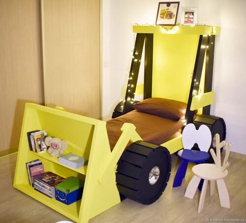 Эта кровать выполнена в виде точной копии настоящего экскаватора. Она имеет яркую расцветку и детализированный дизайн, который делает ее похожей на настоящую строительную технику. Кровать в виде экскаватора подарит ребенку удивительные игровые возможности и сделает его комнату по-настоящему уютной и интересной.