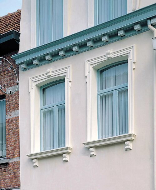 Карниз под окном на фасаде здания является важным элементом архитектурного дизайна. Он не только придает зданию завершенный вид, но также выполняет функциональные задачи, защищая окно от осадков и создавая дополнительный слой изоляции.