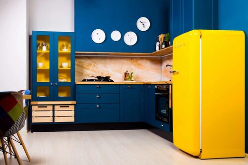 Лимонный цвет в интерьере кухни