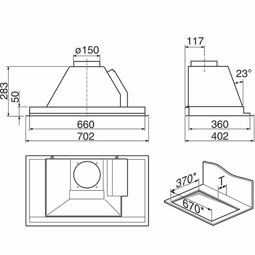 Franke вытяжка встраиваемая FTC 632l gr/XS схема встройки