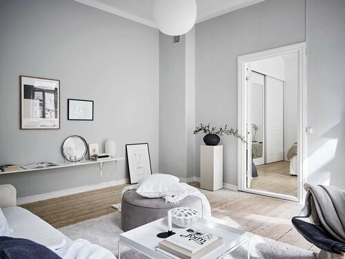 Интерьер со светло серыми стенами может придать вашему дому уютность, элегантность и современный вид. Этот нейтральный оттенок отлично сочетается с различными элементами декора и мебели, что делает его универсальным выбором для разных стилей интерьера.