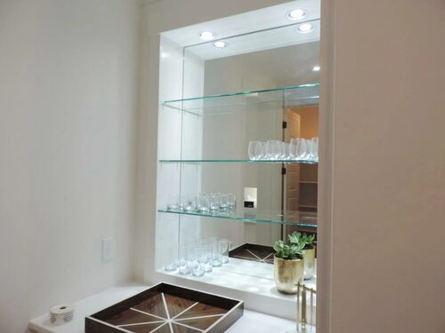 Стеклянные полочки в гостиной