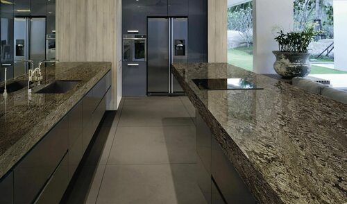 Гранитные столешницы в кухне или в ванной комнате придают помещению элегантность и изысканность. Кроме того, гранит легко чистить и устойчив к повреждениям, что делает его практичным выбором для рабочих поверхностей.