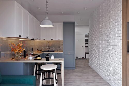 Белый кирпич в современной кухне