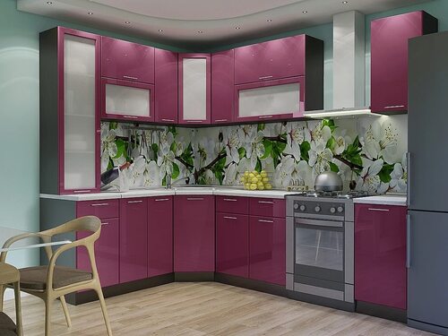 Кухонный гарнитур с фартуком яблоневые цветы