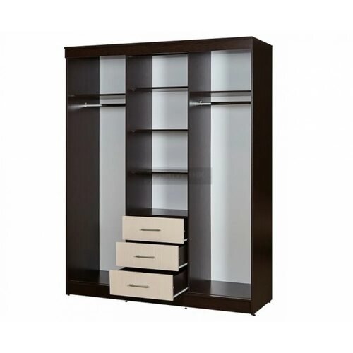 Шкаф купе Маэстро внутри обладает различными функциональными элементами, такими как выдвижные ящики, полки, вешалки для одежды и многие другие. Это позволяет максимально эффективно использовать пространство шкафа и хранить различные предметы.