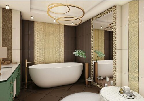 Кафельная плитка позволяет реализовать различные дизайнерские идеи в интерьере ванной комнаты. От классических мозаичных узоров до современных геометрических композиций - возможности использования кафельной плитки поистине безграничны.