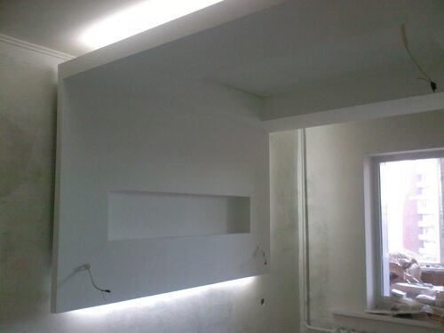 Ваш короб из гипсокартона с подсветкой на стене готов! Наслаждайтесь эффектным декоративным элементом и уютным освещением, которое он создает в вашем интерьере.