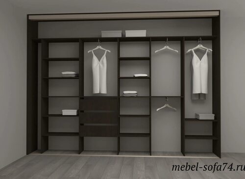 - Полки и открытые стеллажи для хранения одежды и аксессуаров;