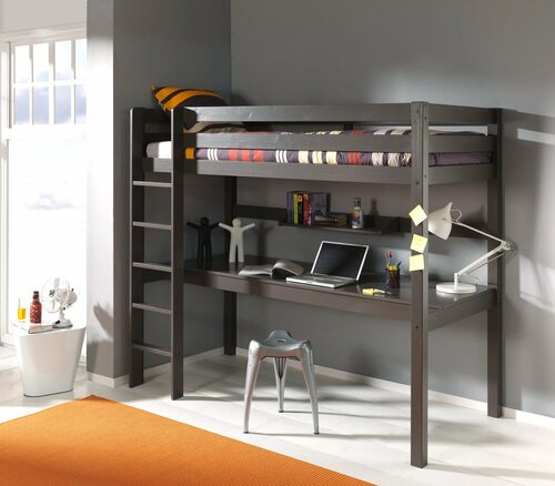 Этот тип кровати обычно имеет под собой свободное пространство, которое можно использовать под рабочий стол или игровую зону. Такая конструкция позволяет оптимально использовать площадь комнаты, освобождая полезное пространство на полу.