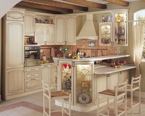 Кухни в классическом стиле с барной стойкой — это идеальное сочетание изысканности и удобства. Классический дизайн кухни придает интерьеру особую элегантность и шарм, а наличие барной стойки добавляет функциональности и создает уютную атмосферу для общения с семьей и гостями.