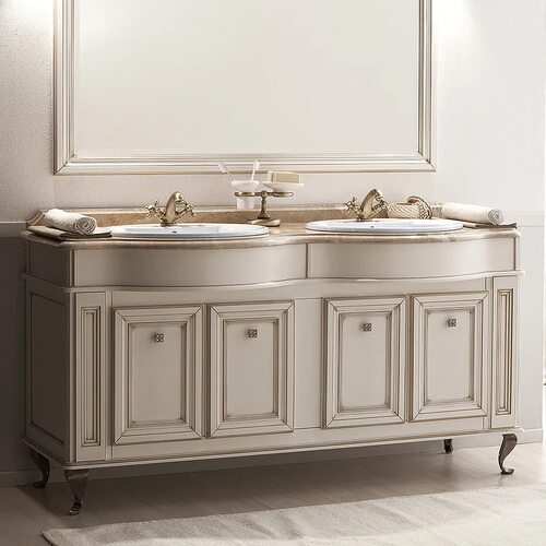 Фото 1: Пример тумбы на 2 раковины в классическом стиле.
